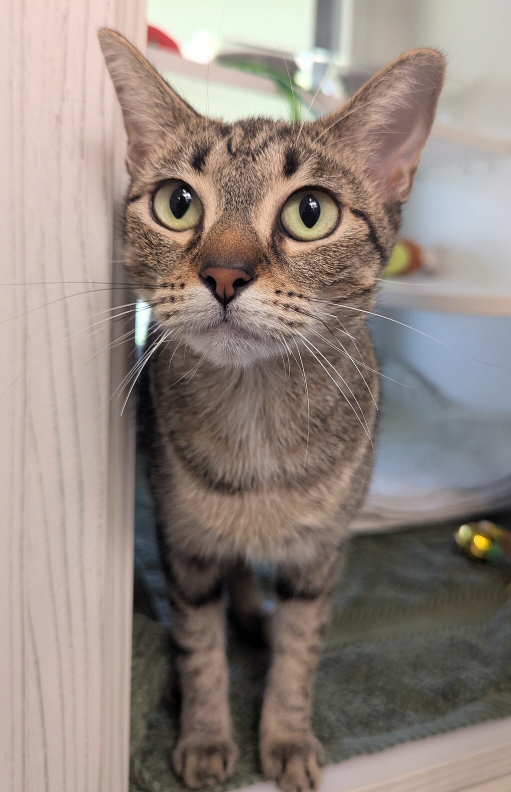 Quince is a gorgeous little tabby with a super sweet and gentle personality. Quince loves nothing more in life than lapping up all the attention on offer, and then settling down by a sunny windowsill for a bath :) Take a chance on me and you won't be disappointed!