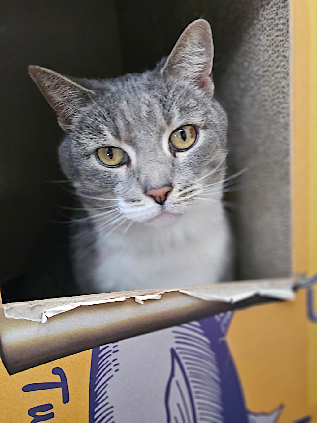 With her velvety-soft, silvery coat, Sylvie adores gentle pats and never says no to a good chin scratch.