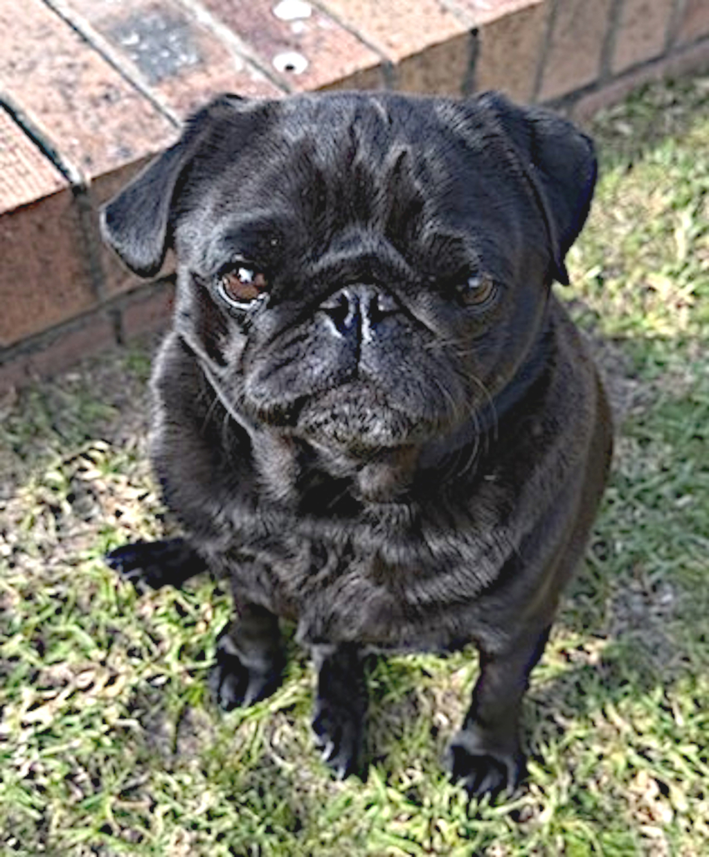 Conrad is a 6yo, desexed, black, male Pug. He is a friendly dog who gets on well with dogs and humans alike. He doesn't appear to have any fears or bad habits though he is fond of chasing birds that he can't catch.