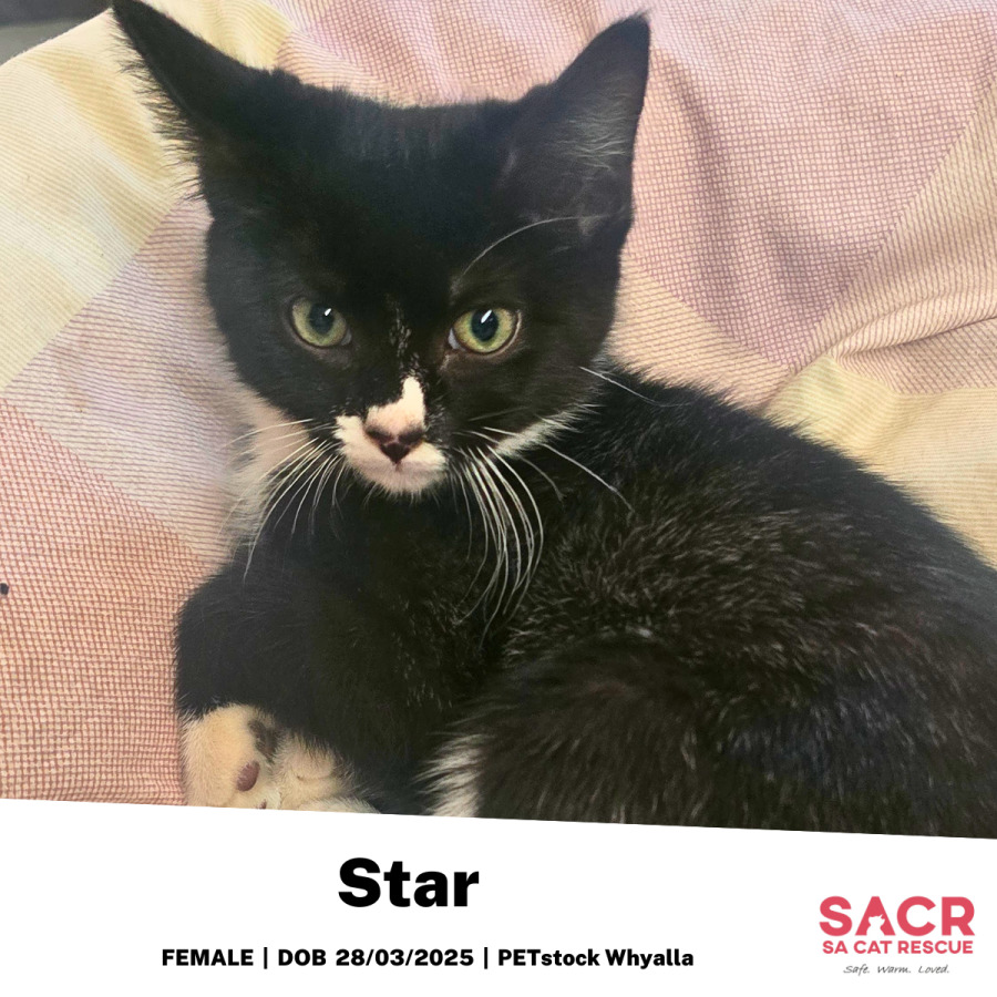 Star's adoption fee is $195 which includes desexing, microchipping, parasite prevention, and initial F3 vaccination.