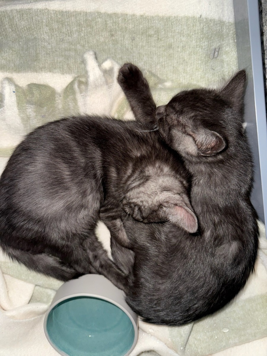 Danny is one half of the best-behaved kitten pair you'll ever meet. He and Kenickie love nothing more than sharing playtime and cozying up for naps together. Their warmth and affection extend beyond just each other, as both enjoy the company of humans and are social companions.