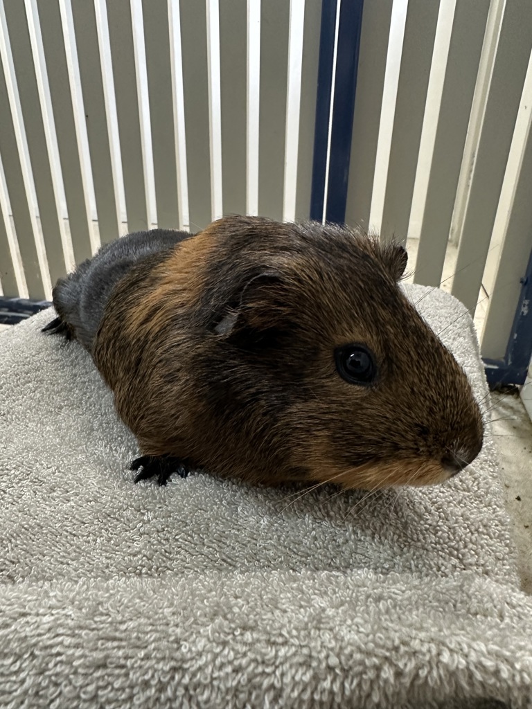 Rice is a social and curious piggie with a gentle nature. She's still young, so she enjoys exploring her environment and munching on her favorite veggies. She has a sweet demeanor and thrives in the company of other guinea pigs, so she must be adopted into a home with a compatible companion or as part of a pair.