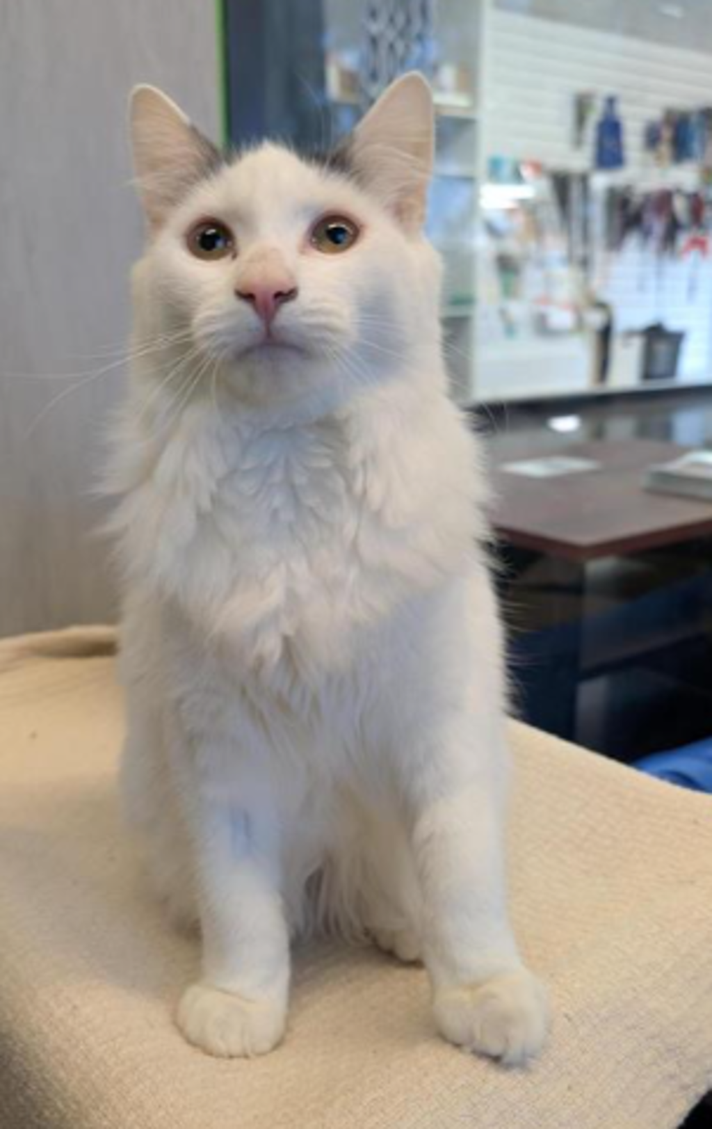 With his soft, cloud-like fur and piercing eyes, Nimbus could easily pass as a member of the Magical Creatures department - though he prefers cozy laps to the Forbidden Forest.