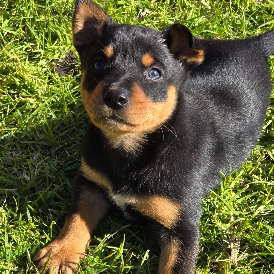Kiwi is an adorable pup who’s ready to write her own story. Like all Kelpies, she’s naturally smart, emotionally attuned, and eager to form a strong bond with her people. She’s still just a baby, but there’s already something very engaging about her energy – like she’s quietly taking it all in, ready to jump into life with her new family.