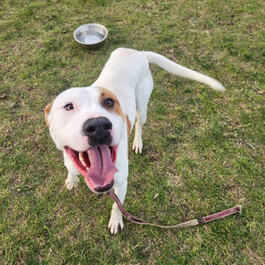 Bull is a 1.5-year-old bundle of love and potential, ready to find his forever home! This handsome pup is looking for a family who'll include him in their daily adventures and continue the great progress he's made with his basic manners. He's smart, eager to learn, and thrives with gentle guidance and consistency. Bull's ideal day? Long walks, fun playtime, training sessions that challenge his mind, and ending it all with some well-earned couch snuggles. He might also enjoy having a well-mannered, playful doggy friend to show him the ropes and keep him company. Bull does exhibit signs of separation anxiety and will need a home where he's not left alone for long periods, especially at first. His new family should be ready to help him build confidence and independence - not by coddling, but by providing structure, patience, and reassurance. He has shown some destructive behaviors when left on his own, so he'll need a secure yard and a home committed to helping him feel safe and settled. He also has high physical exercise needs and would benefit from an active lifestyle. A strong, capable handler is important, as Bull can be quite powerful on walks. Because of his size and enthusiastic energy, Bull would do best in a home with children aged 12 and up. He's not a good fit for homes with cats or pocket pets - he prefers to keep his inner circle canine (and human!). If you're searching for a loyal companion who's full of heart, energy, and just needs a little guidance to truly shine, Bull might be your perfect match. Apply to meet him - you just might fall in love.