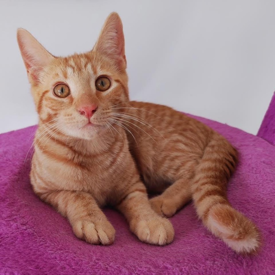 I'm a very happy cutie pie of a kitten, full of love for hoomans and full of personality and kitten fun. I love to play chasey with anything that I can pat, and when I've used up all my energy, I love having smooches and cuddles on your lap. I'll reward you with the loudest of PURRRRS, and as many tummy cuddles as you can handle.