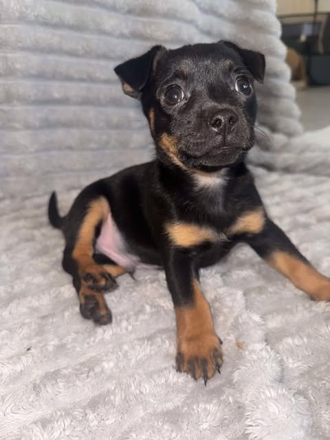 A sweet, gentle boy who prefers cuddles and attention over a rough game of tug of war. He’ll waddle around behind you with a full tummy of his favourite food and snuggle in for the night. His bursts of playfulness and loving nature is the perfect mix. He’s expected to grow to medium size, making him the perfect cuddle buddy. He has spent lots of times around kids, cats and dogs. He will be happy to be another member of the family.