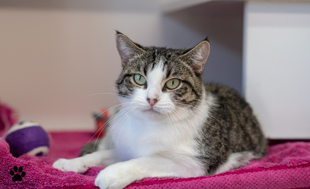 After spending more than four months at the shelter, Macey is ready to embrace a new family and home. Her loving disposition and playful antics are sure to capture your heart. For those seeking a loyal and loving companion, Macey could be just the cat you're looking for, ready to share a life filled with love and adventure.