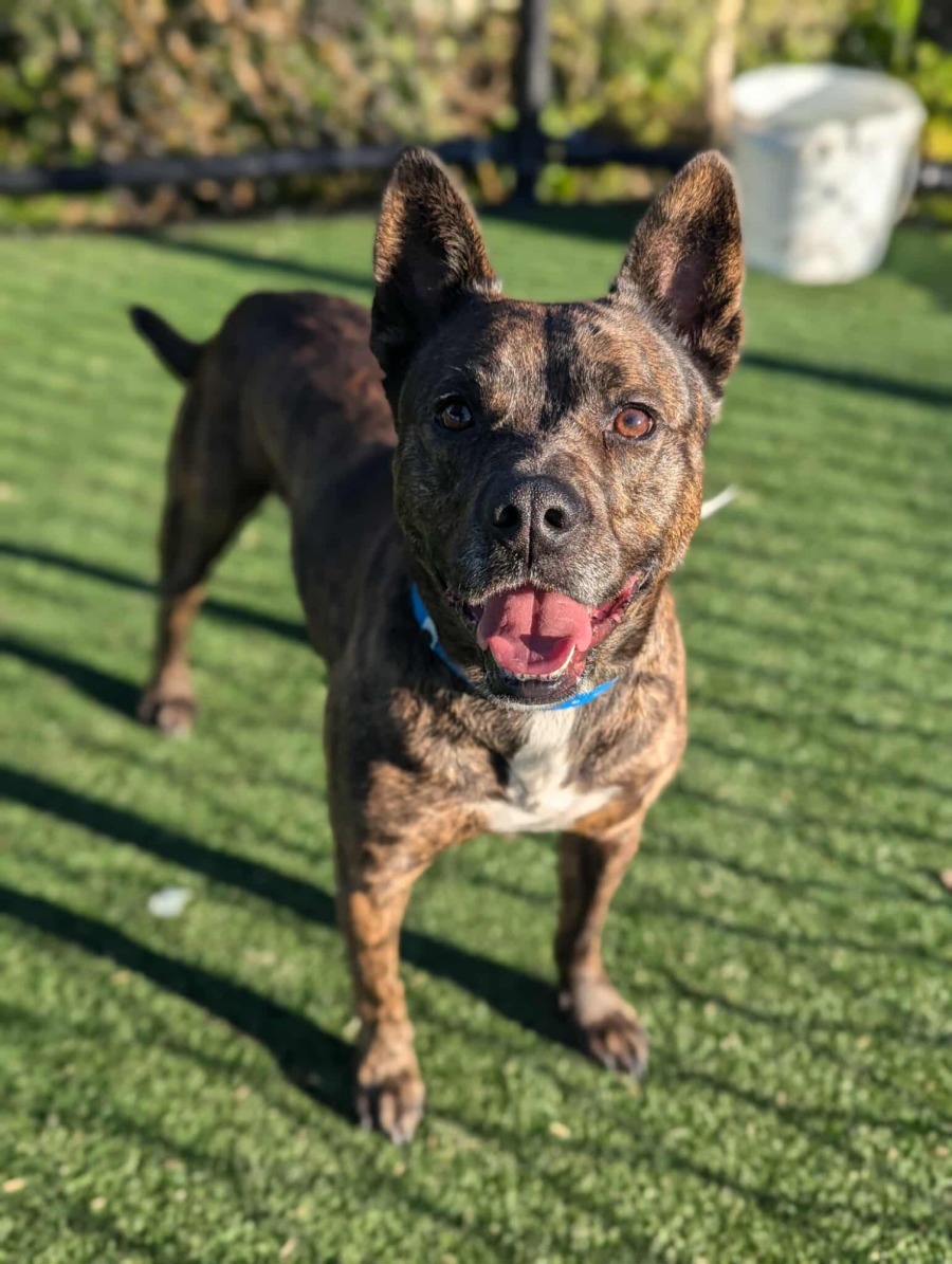 Tyson knows how to sit and learns quickly, especially in a peaceful environment. He’d thrive with older, dog-savvy kids and a calm canine friend to help guide him.
