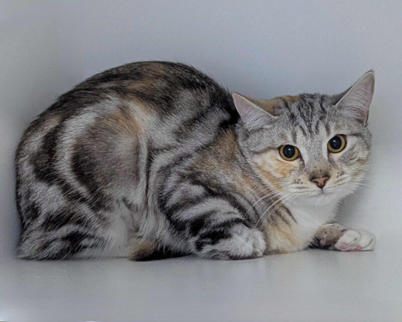 Cinder has a shy side due to a history of being scared, so she’s looking for a calm and understanding forever home. She would thrive best in a peaceful household without young children, with someone who has experience in cat behaviour. Her ideal human will be patient, kind, and willing to give her the time and space she needs to build confidence at her own pace.
