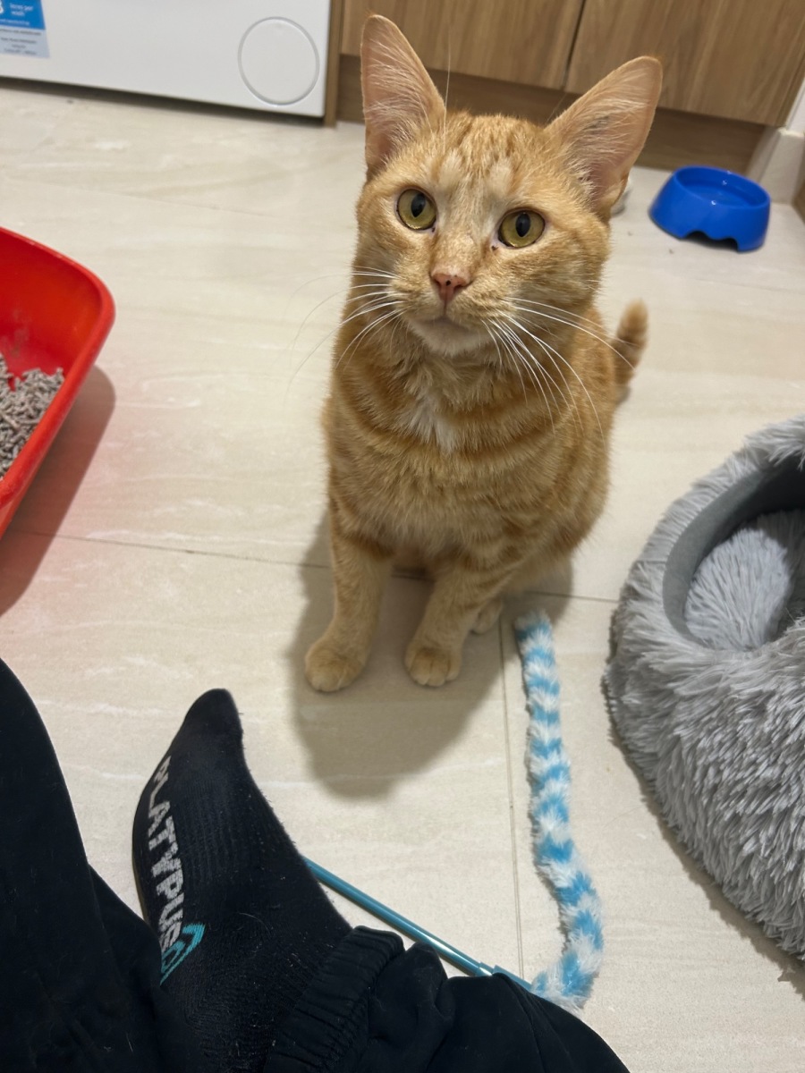 Timmy loves to follow you around, will rub up against your legs, loves a pat and a scratch and has the most beautiful little meow that comes out when he's in the mood for attention.
