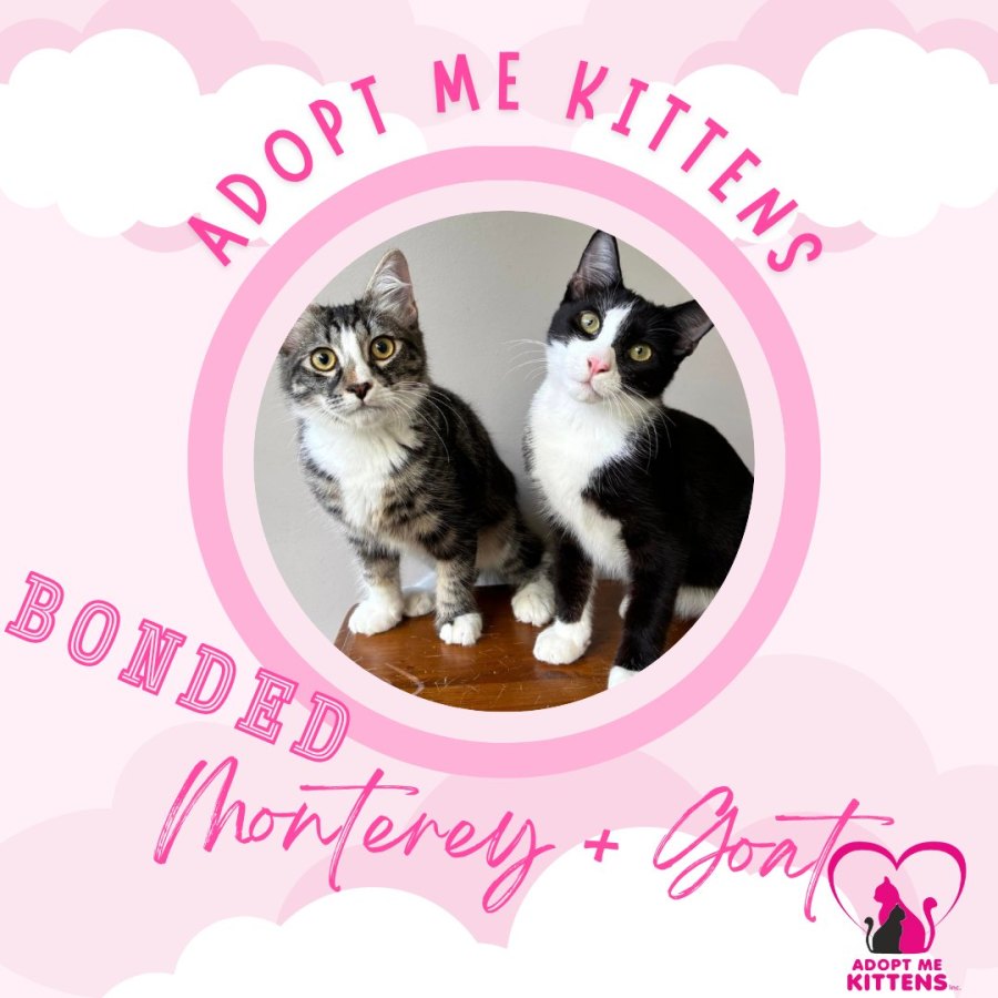 Adopting two kittens has a lot of benefits with the boys playing together, grooming each other and generally keeping each other company while their humans are out. Monterey and Goat need to be kept inside only or have access to a secure outdoor enclosure. These boys have been let down once before, but their endearing personalities continue to shine through.