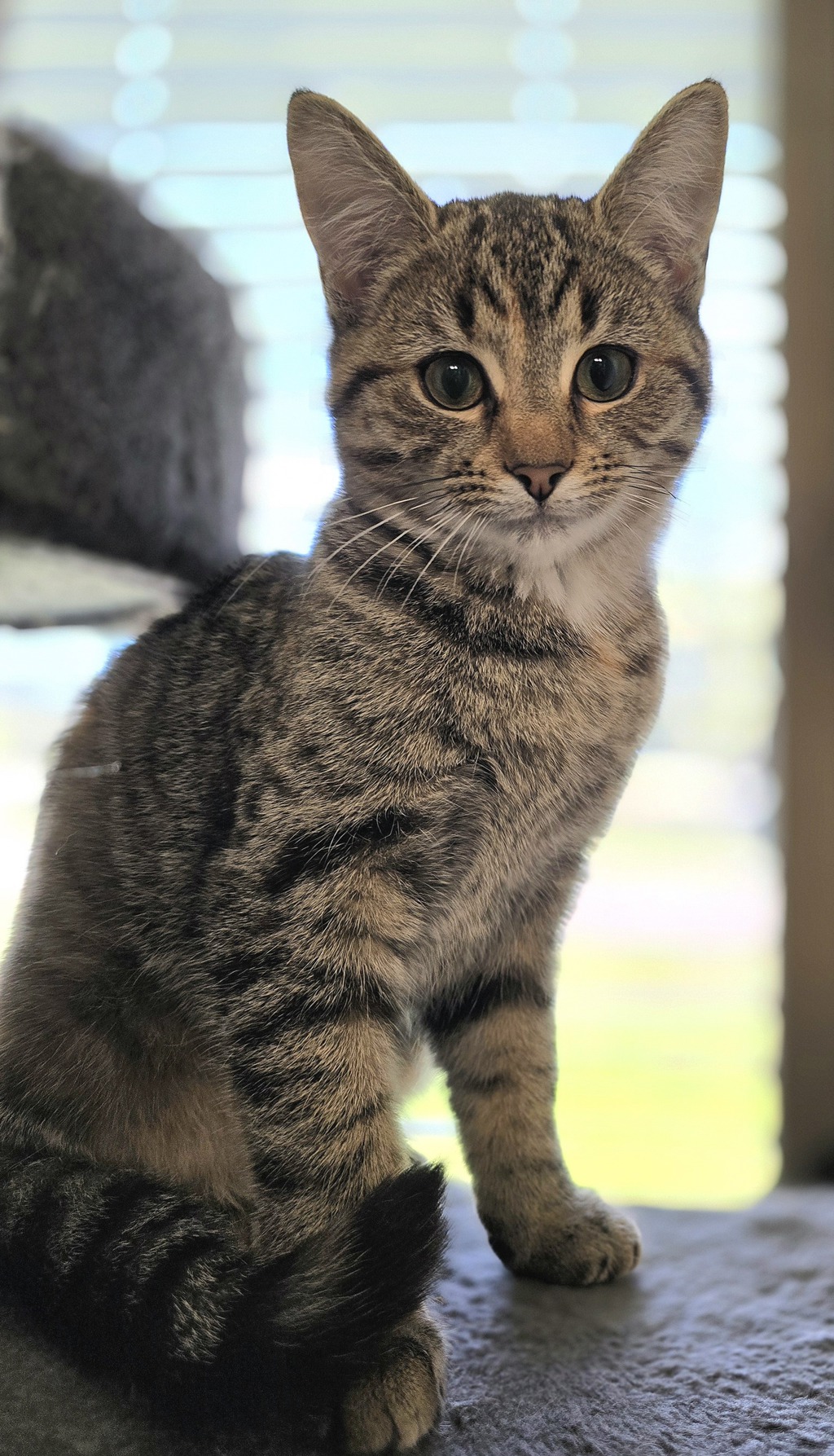 Introducing Nelly, a delightful little tabby torti with a playful sparkle in her eye and a heart full of affection. At just 3 months old, Nelly is already showing the world how friendly, fun-loving, and full of life she is.