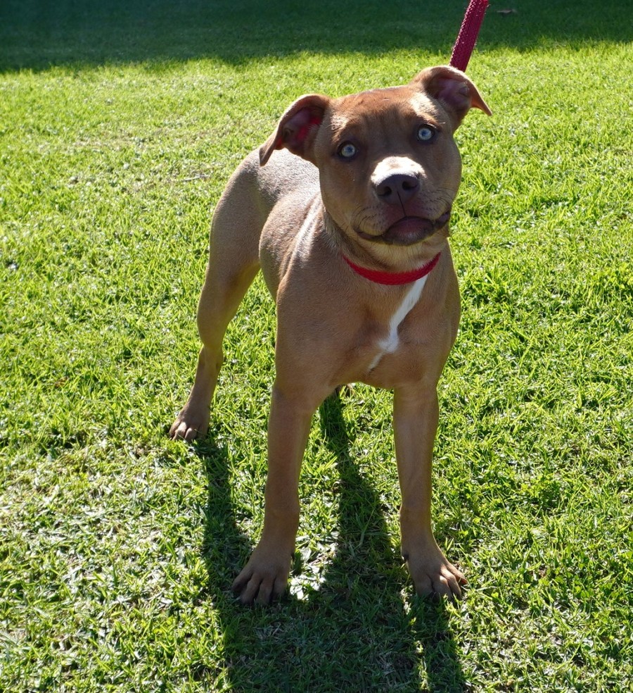 Prada is a vibrant young American Staffy pup with a big personality and an even bigger heart. She’s full of bounce, cheeky charm, and loves to be in the middle of whatever’s going on.