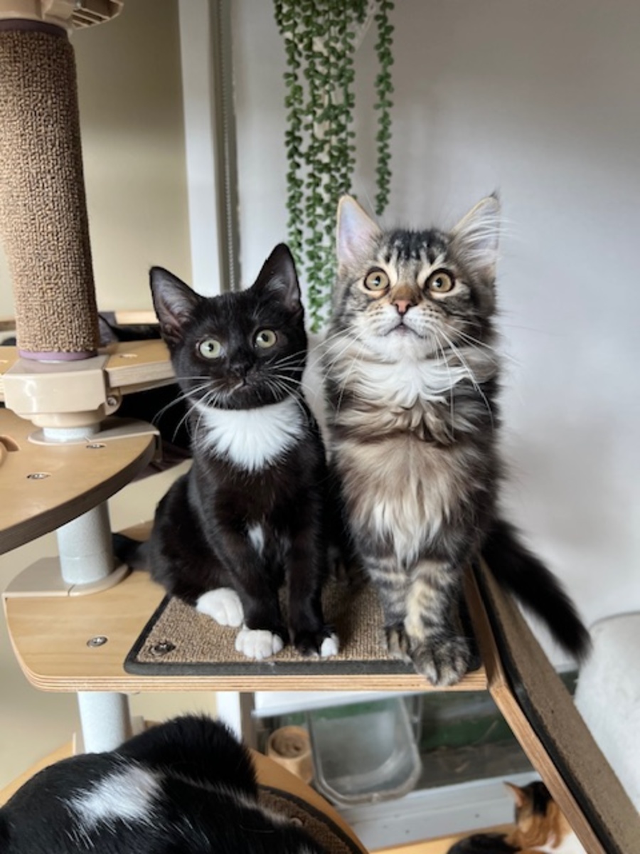 Jack is a true gentle floof ball! He's a little docile and occasionally a touch clumsy, which only adds to his charm. He adores gentle play and is easily entertained by a soft toy or a slow-moving feather wand. Jack can be a little sensitive to loud noises, so a calm environment where he feels secure would be ideal. He might take a little while to warm up to new people, but once he does, you'll be rewarded with endless affection and soft purrs. Jack's bond with his sister Jupiter is incredibly strong; he relies on Jupiter a lot for comfort and confidence, making their adoption together essential. While he hasn't been tested with dogs, Jack is ok with kids who understand how to be gentle, and he's great with other cats.