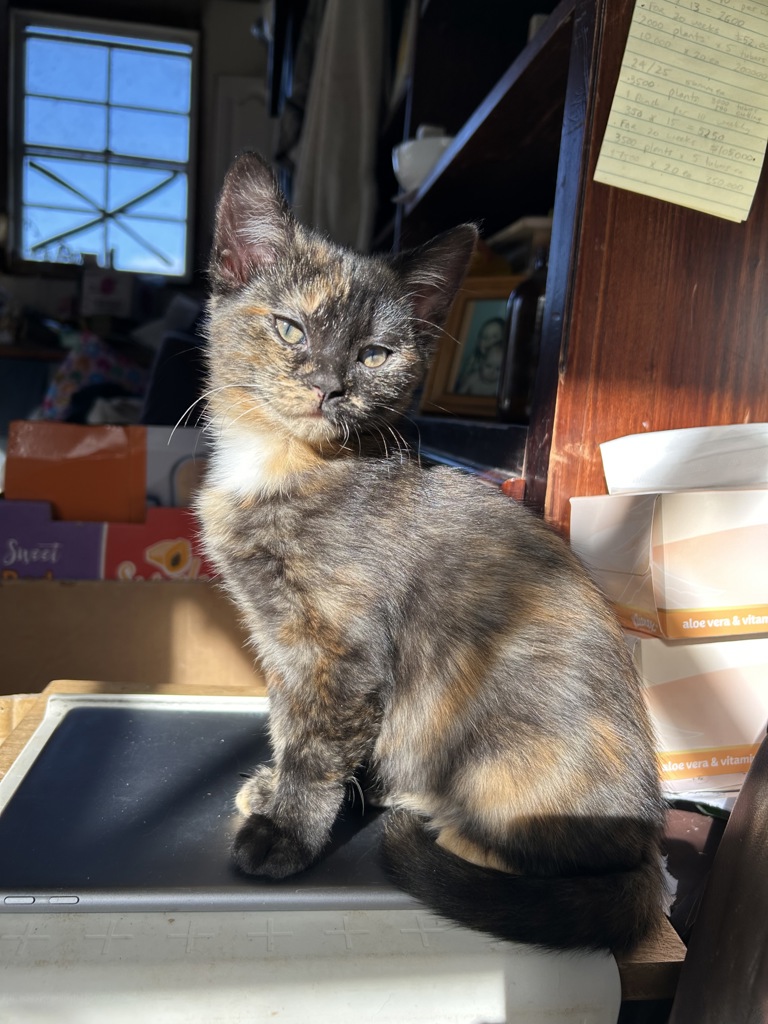 Olive will come to you for snuggles often, crawling onto your lap and purring. She'll settle down with you and enjoy a chin rub for ages. She loves to play and chase toys.