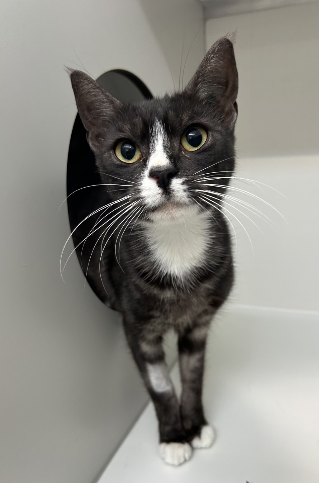 This young kitty may be a little shy at first, but once she feels safe, her sweet and affectionate nature shines through. She loves quiet companionship, cozy napping spots, and gentle pets. Hilda would thrive in a calm, patient home where she can blossom at her own pace. If you're looking for a loyal little friend with a heart of gold, she's the one for you.