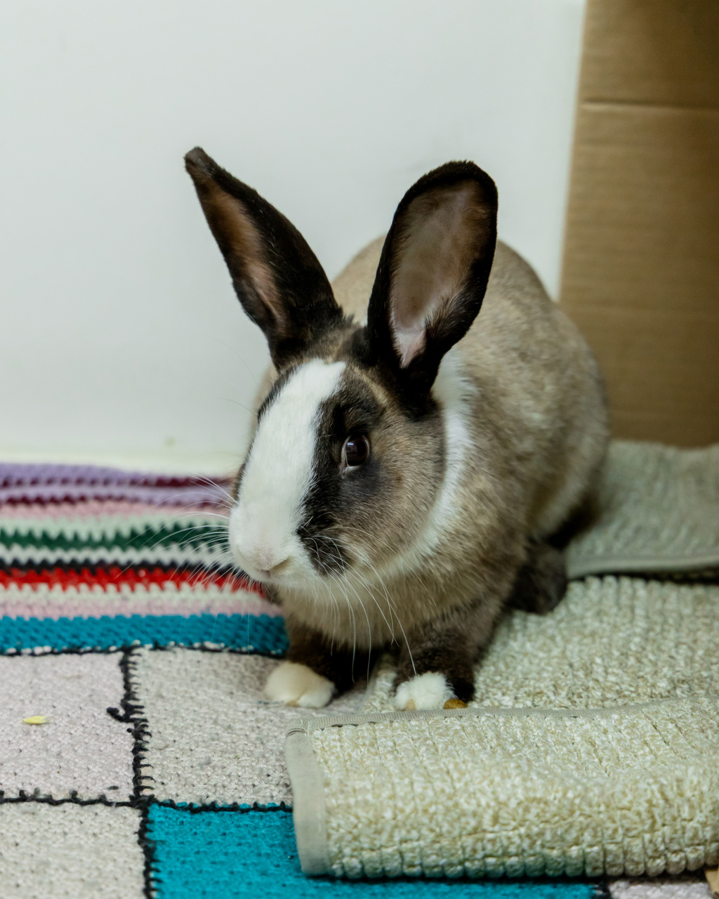Despite his busy digging schedule, Labubu is a friendly little lad who'll happily pop over for a sniff and a snack once he's inspected every corner of his enclosure. He's a bright spark who would thrive in a bunny-savvy home that can offer plenty of enrichment and space to safely channel his digging dreams.