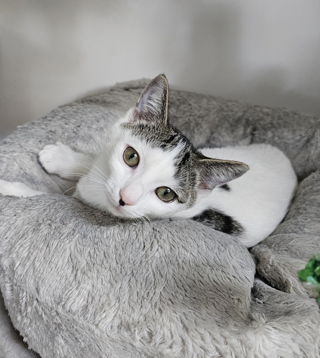 I have perfected the art of the irresistible purr. It's like my secret weapon for getting all the cuddles and chin scratches I could ever want. Life's just one big, exciting string of moments, and I'm here to make every second count - whether I'm chasing my tail or sharing some purr-fectly quiet time with my favourite humans. So, if you're up for a bundle of furry fun and a lifetime of companionship, please consider adopting me!