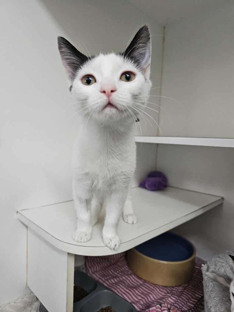 I have perfected the art of the irresistible purr. It's like my secret weapon for getting all the cuddles and chin scratches I could ever want. Life's just one big, exciting string of moments, and I'm here to make every second count - whether I'm chasing my tail or sharing some purr-fectly quiet time with my favourite humans. So, if you're up for a bundle of furry fun and a lifetime of companionship, please consider adopting me!