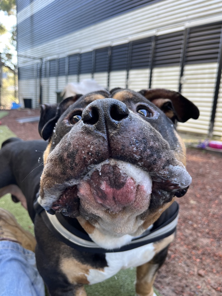 Zeus is a powerful presence with a heart of gold once you earn his trust. This American Bully may be cautious when meeting new people, but with patience and kindness, he reveals his true nature: a thunderous goofball who adores gentle pats, plush toys, and all things squeaky.