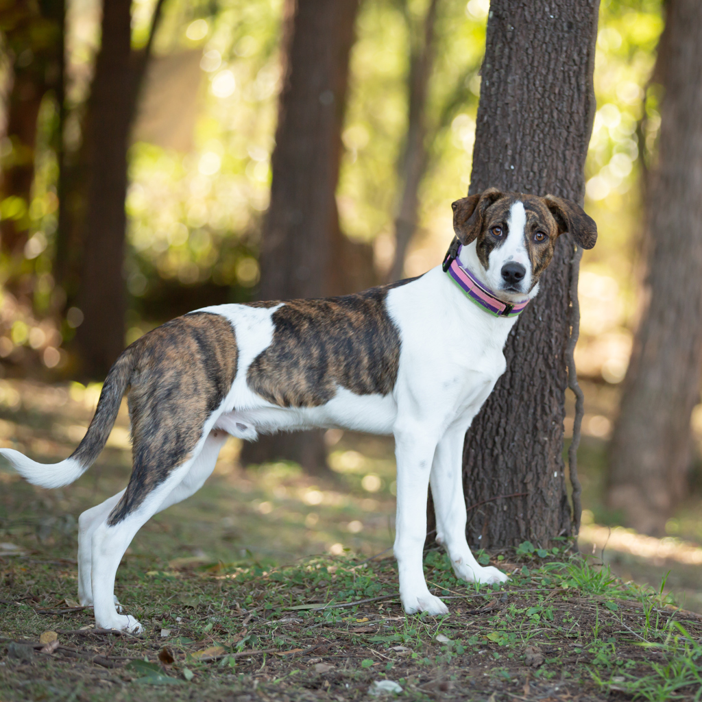 This 6-month-old Bull Arab x is a big bundle of love, fun, and floppy paws! Baxter is a social butterfly who adores people and gets along beautifully with other dogs - he's the life of the party at puppy playdates!