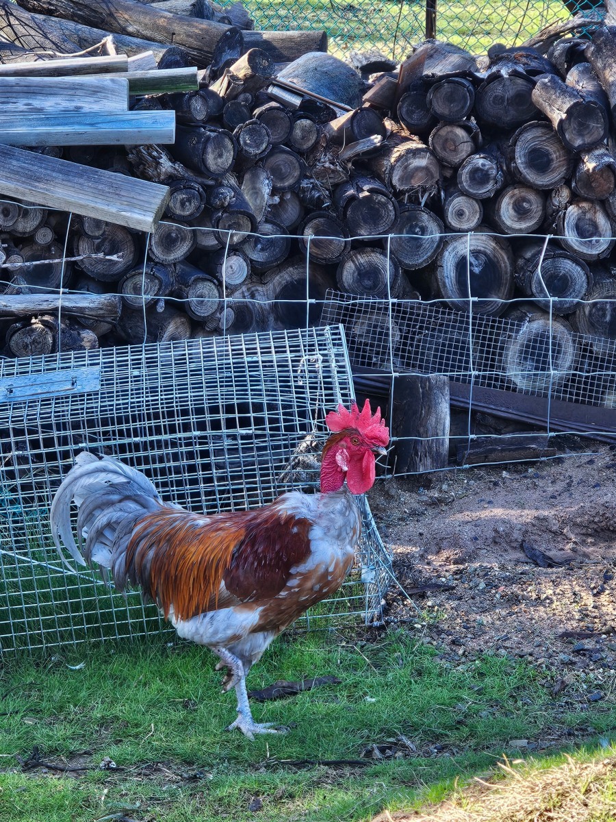 Riff Raff is a young, Transylvania Naked Neck rooster. He is a quiet and gentle young rooster who has never shown aggression towards people of the other chickens.