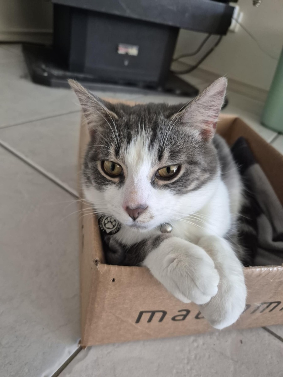 The adoption process involves three steps: completing an application form, attending a meet and greet, and undergoing a home check. The home check can be conducted in person or via a video walkthrough. We’re primarily looking to confirm that the home is safe for an indoor-only cat — this includes features like secure flyscreens and the ability to keep doors closed.