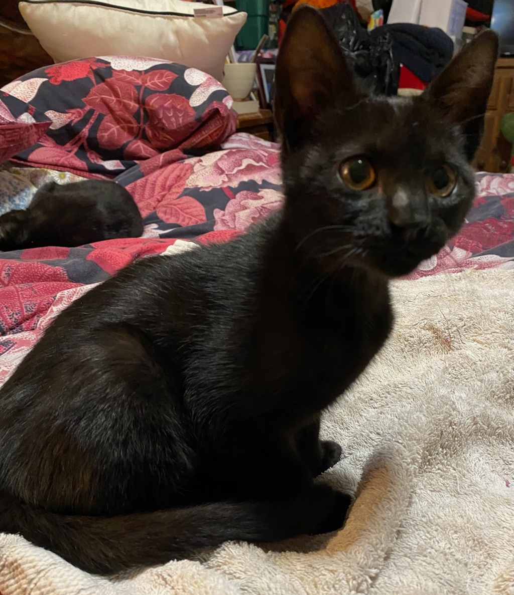 Merlot is a very friendly little kitten. She loves to be picked up and cuddled and will look for you when it is sleep time so she can cuddle up on you.