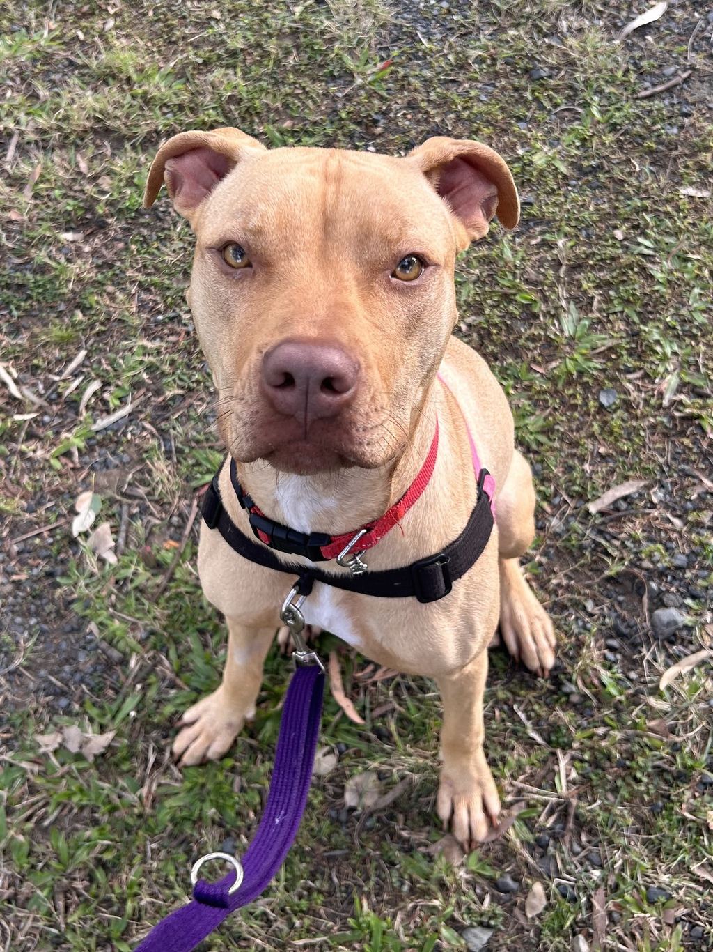 My name is Creamsicle, and I am a very sweet and silly young girl! I love to play with all my toys, but sometimes I can get a little too silly, so if my new family has kids, they need to be a little older. I LOVE going for walks and as soon as I see the harness I already know to sit! I'm good with other dogs, and I would love to have another doggie friend to be around with! I don't like being by myself that much. I would love for my new family to have an active lifestyle and have another dog, so I have someone to play with all the time because I have so much energy and love to give!