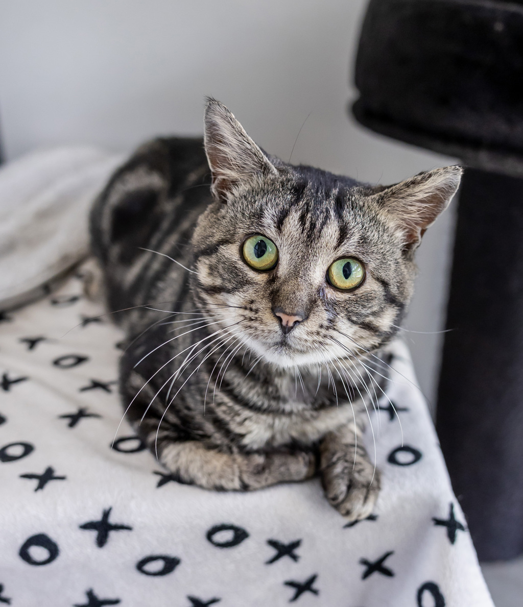 Quest is on the lookout for a calm, loving home where he can settle in at his own pace. He'd love a comfy spot by the window, a stash of toys, and a human or two who are happy to go slow and let his personality shine through. In return, he promises loyalty, gentle cuddles, and maybe the occasional sneak-attack on your snack drawer.