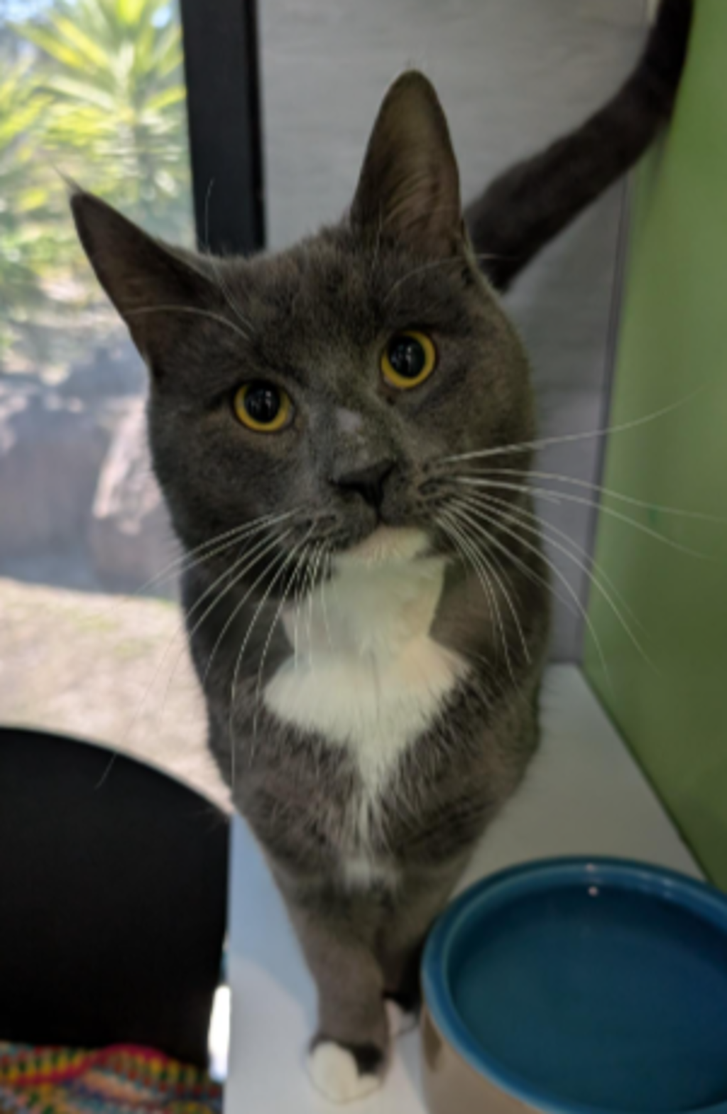 Looking for the perfect combination of charm, cuddliness, and quiet companionship? Allow us to introduce Eron - a stunning grey and white Domestic Short Hair boy whose soft coat is only rivalled by the softness of his soul.