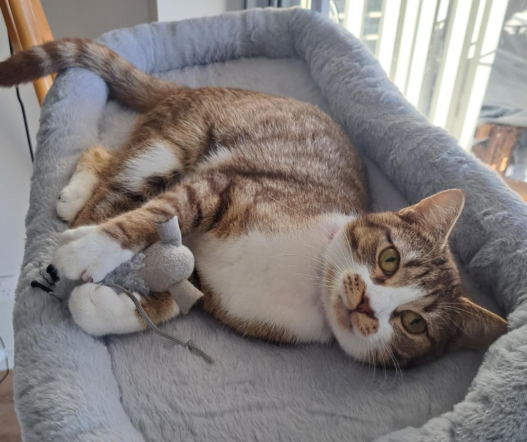She is a very playful and energetic girl who loves her toys and scratching posts. After spending the mornings and evenings getting in her exercises, she loves nothing more than to laze in her bed or window hammock during the day.