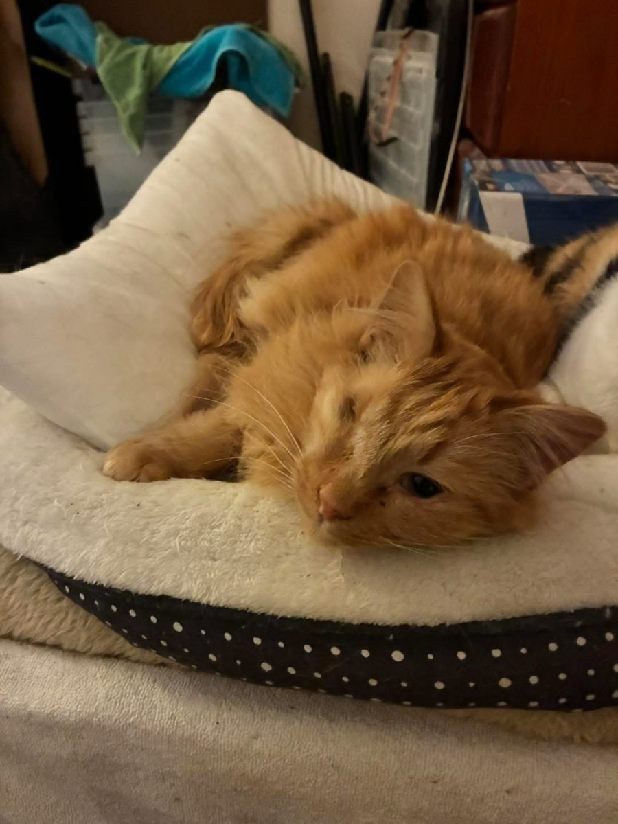 Rescued as a kitten with her brothers and sisters who have all found their forever homes. Narahni and her siblings came into care suffering badly from cat flu which attacked their eyes. With treatment and love all recovered and eyes saved except Narahni’s right eye which I was able to fund removal of 2 months ago. She recovered well and is so much happier and pain free now.