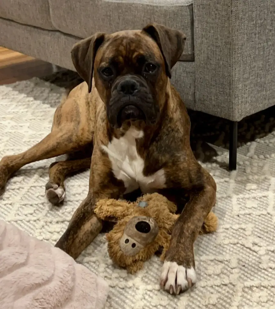 Tyson loves zoomies, tug of war, chewing on toys, wrestling with his doggy friend, and cuddling on the couch. This clever boy is toilet trained, crate trained, and knows all the basics β sit, stay, drop, shake hands, and go to bed.