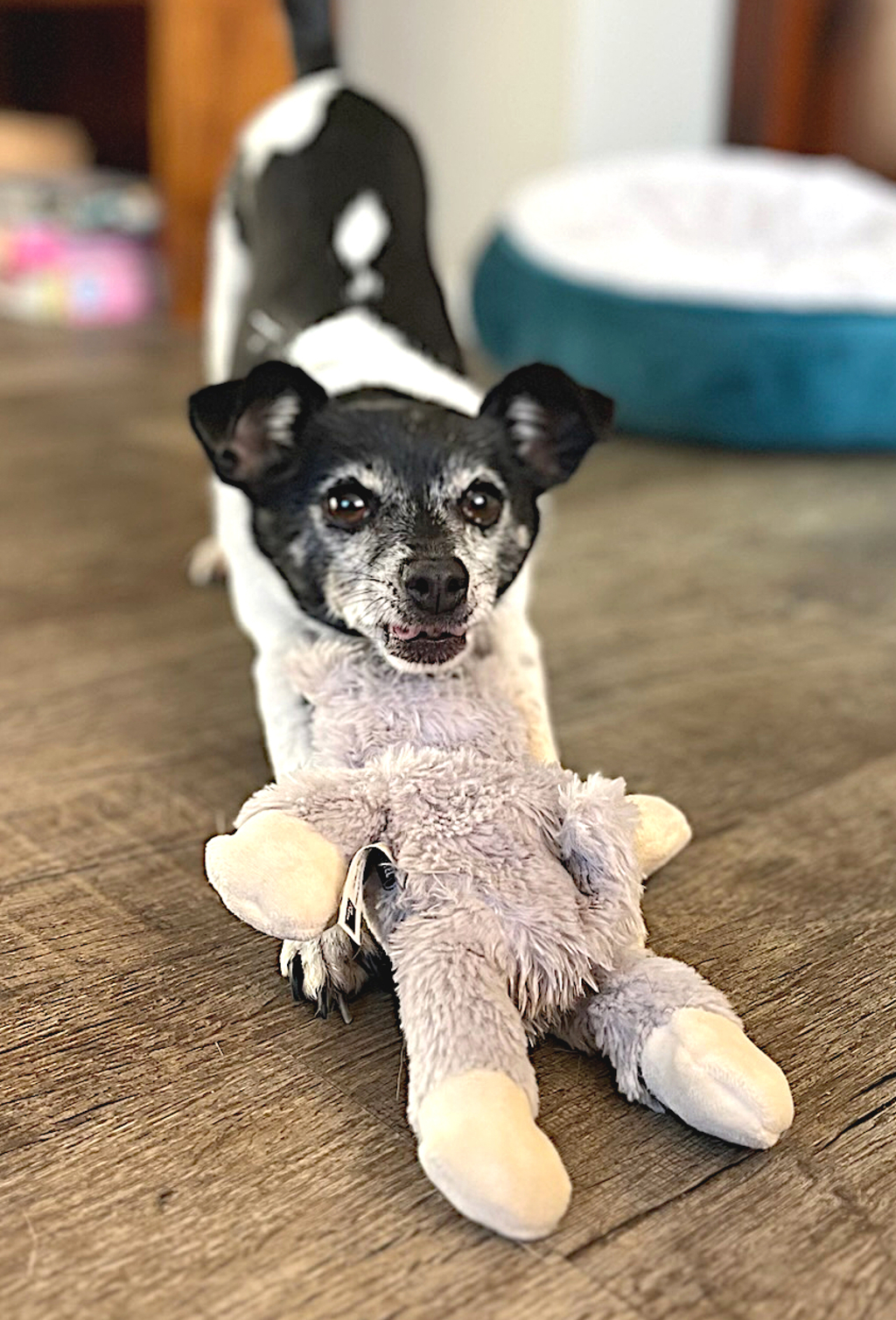 He is a self-contained, small, housetrained dog with seemingly no bad habits. He spends time on his own with access to outside without anxiety.