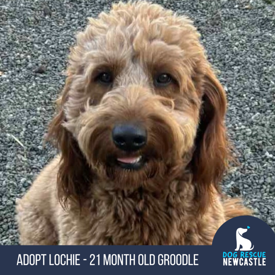 Lochie is a classic Groodle—full of fluff, fun, and puppy energy! At just 21 months old and 25kg, this Golden Retriever x Poodle is still very much a playful pup at heart.