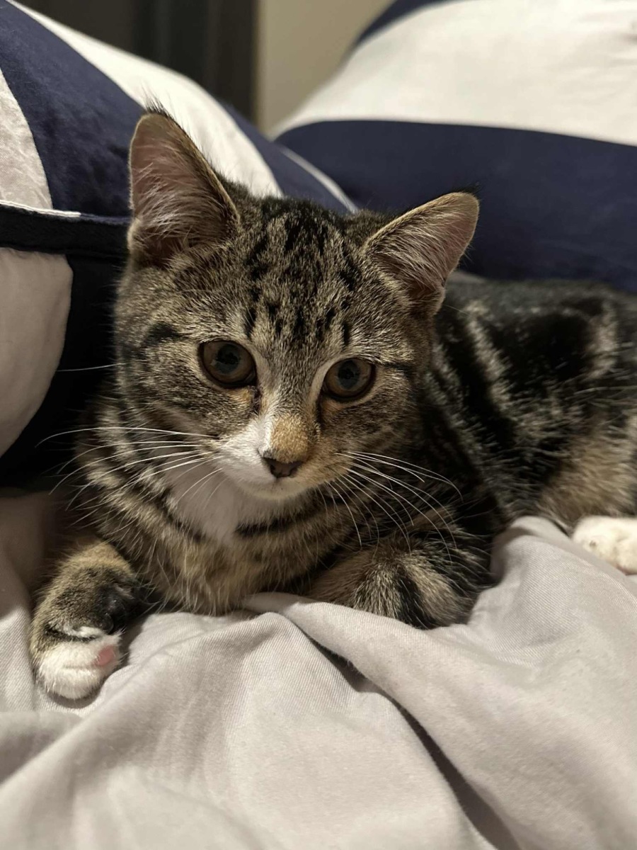 Tiana is a beautiful little tabby with the softest fur and the gentlest heart. A touch shy at first, she just needs a little time and patience to feel safe—but once she does, her loving, loyal nature truly shines.