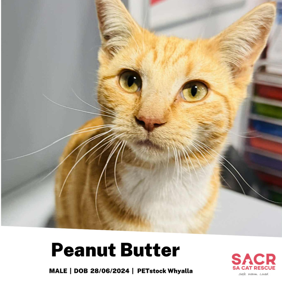Peanut Butter is a ginger and white sweetheart who’s as soft in personality as he is in fur. This affectionate boy is a total smooch who wants nothing more than to be your constant shadow. If you’re after a lap warmer, a biscuit-maker, and a full-time lovebug, look no further – Peanut Butter is your guy.