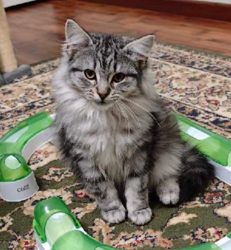 Domestic medium hair - light grey tabby