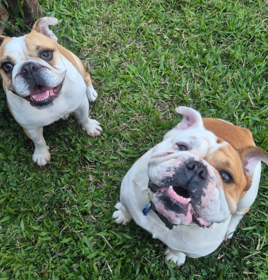 They may look tough and a little rough around the edges but they are in fact big softies. They are both super friendly and love everyone from kids to cats!