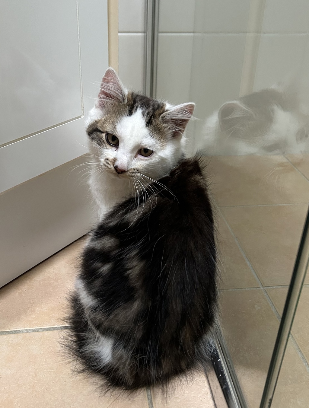 Now in foster care, Gabriel has blossomed into a confident junior cat with a sweet, affectionate nature. He adores his foster mum, gets along well with other cats, and has even been exposed to small dogs - taking everything in his stride!