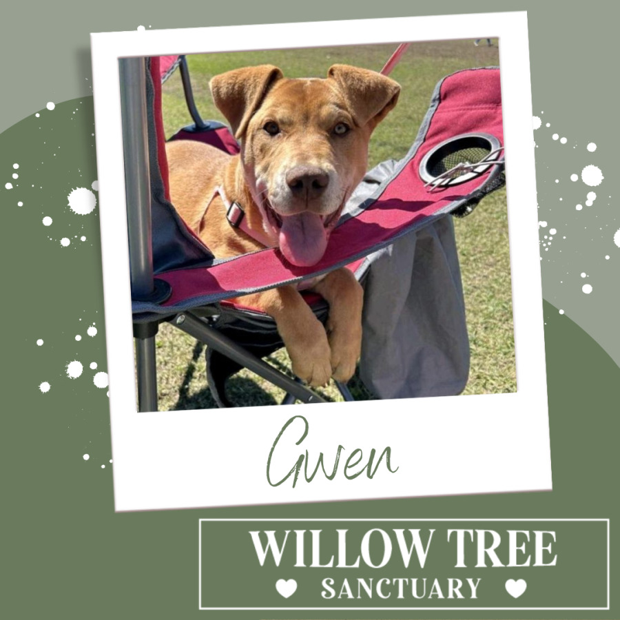 👋🏼 Hi my name is Gwen, I love to cuddle, play and sleep. I am food motivated which will help to continue my training. I am good at sitting and staying and I am great with other dogs and children.