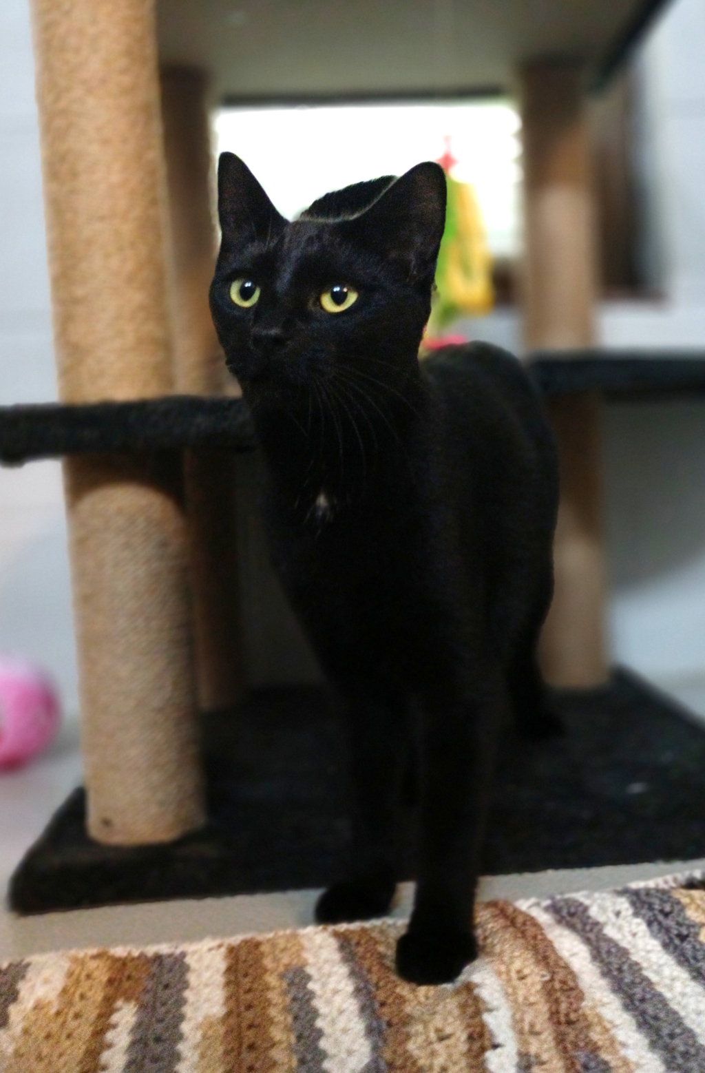 Say hello to Quince, a sweet female Domestic Short Hair with a beautiful black coat.