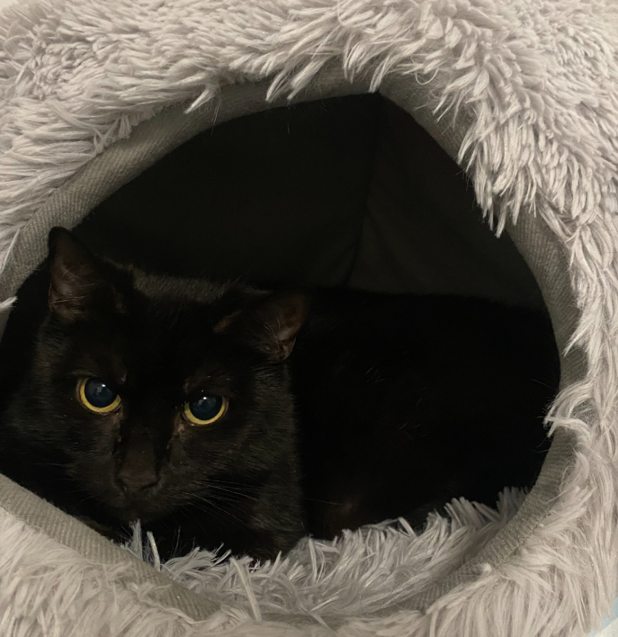 Lucky would thrive in a quiet, calm home with someone willing to give her the time and patience she needs to come out of her shell. She’s definitely a big foodie and loves snuggling up in her cozy blankie and with feline company.