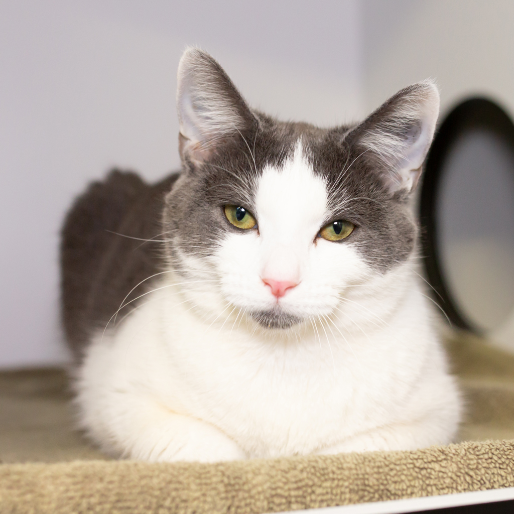 Say hello to Smudge, a beautiful grey and white female cat with the softest fur and the gentlest soul. With her unique markings (including one adorable little "smudge" on her nose!) and calm, loving personality, Smudge is the perfect companion for anyone looking for a little extra love in their life.