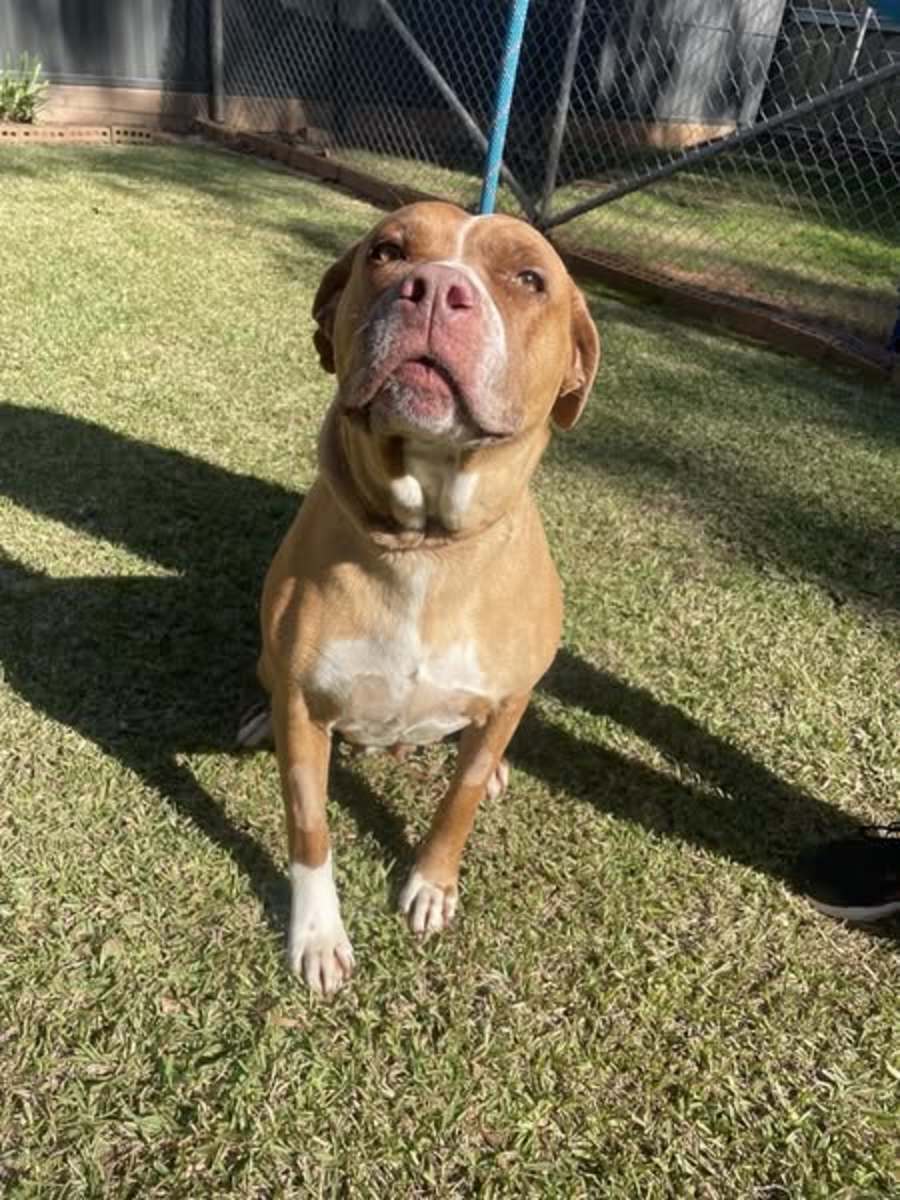 GEORGIE came to the shelter as a Microchipped stray and was sadly never reclaimed. She is a large girl weighing in at 40 kg with an even bigger heart. GEORGIE is a big sook who is happiest when she is with people as she loves her pats and cuddles. She appears to be quite social with all animals however a meet and greet will be required for any other dogs in the home. She knows basic commands, walks well on a lead and is happiest when she is with people.