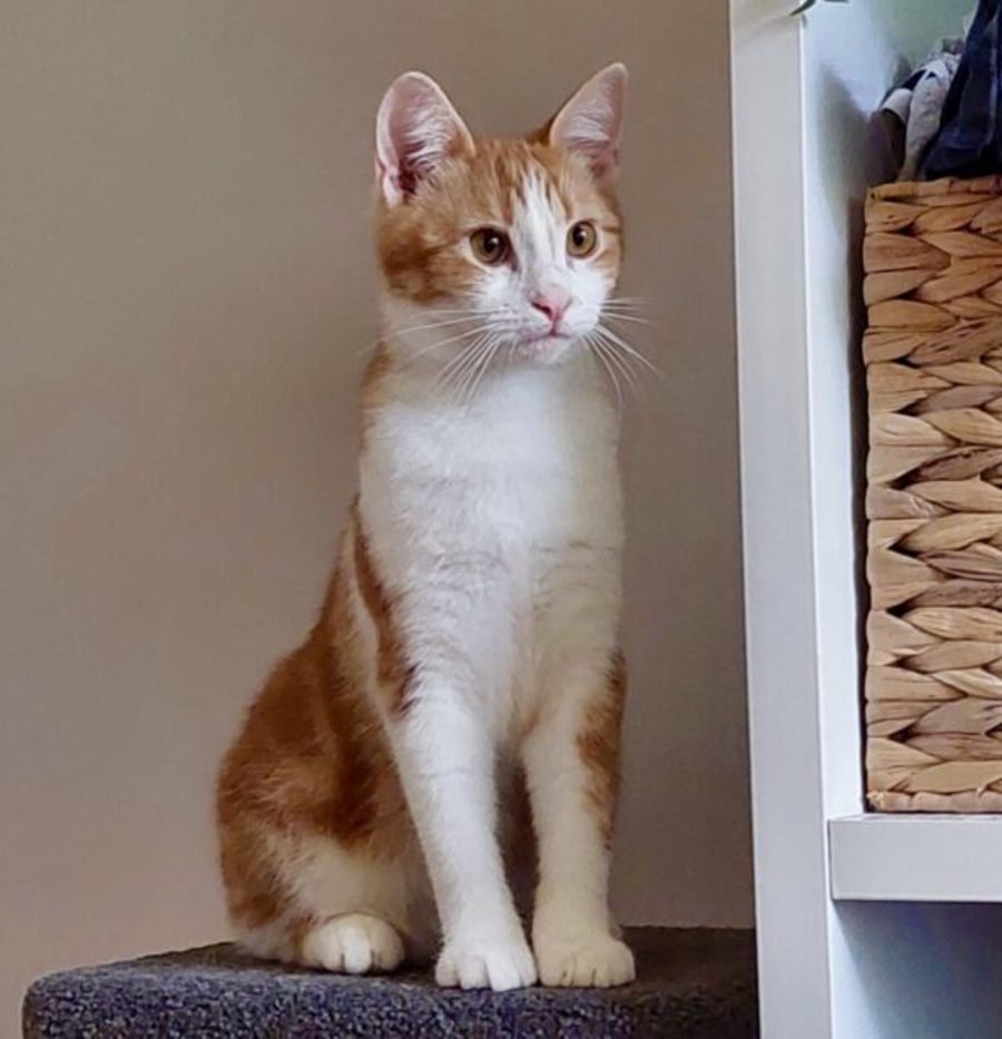 Meet Cheddar—an irresistibly charming 8-month-old ginger tabby with the cutest splotchy feet you’ve ever seen.