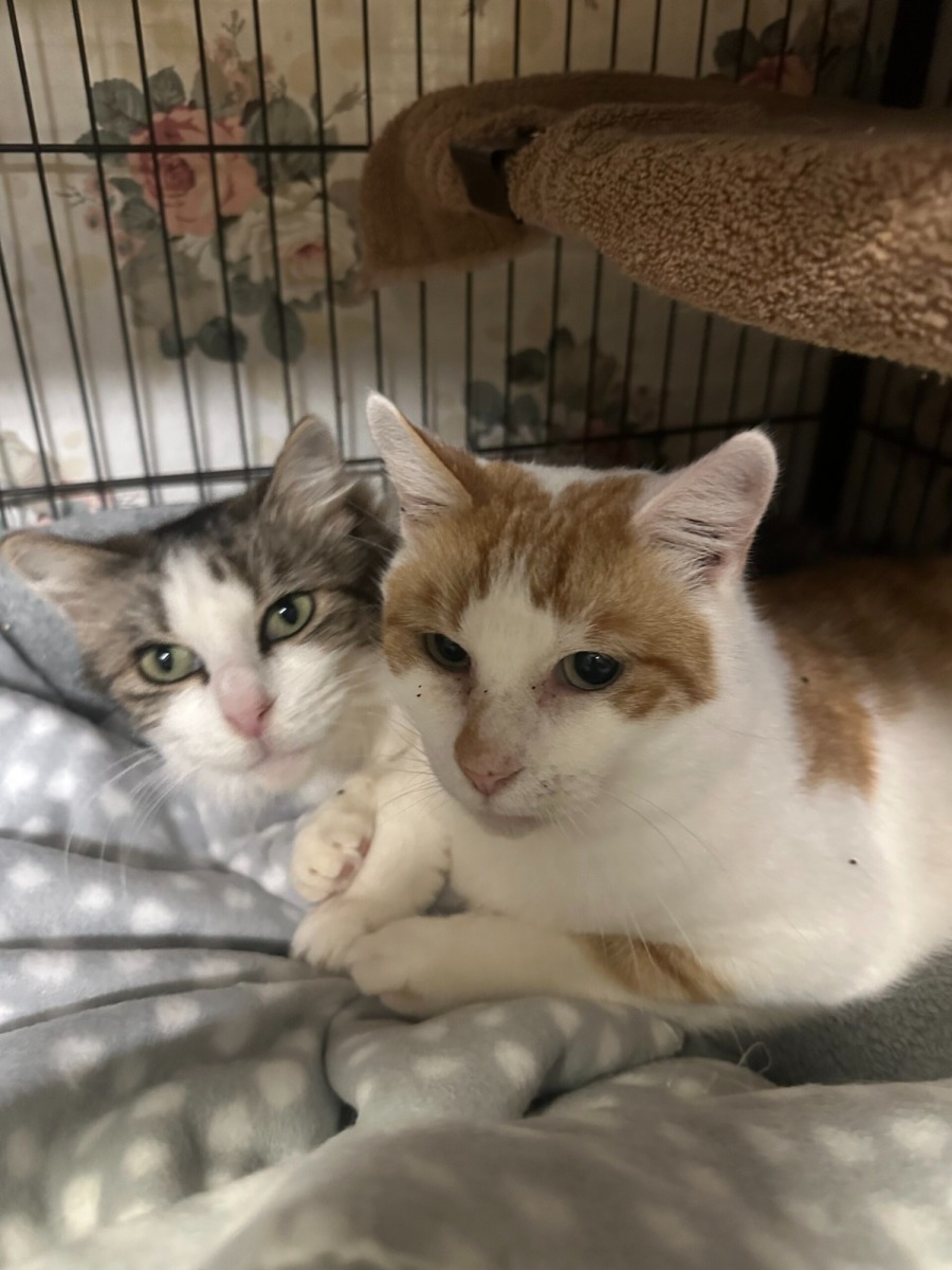 Meet Aladdin and Jasmine, a charming bonded pair with hearts as big as their personalities. Aladdin, 2, has striking white and orange tabby short fur, while one-year-old Jasmine is a beauty with soft medium-length fur in a white and tabby mix. Currently living at our shelter, these two are the best of friends, always side by side and full of affection for one another and the humans around them. Gentle, friendly, and full of life, they love to be patted, held, and included in the daily rhythm of home life.