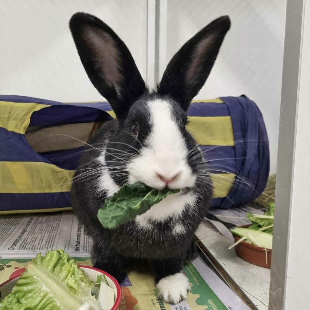 Say hello to Cricket, a big, beautiful black and white bunny with a whole lot of personality!